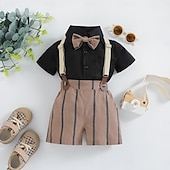 More information about 3 Pieces Ring Bearer Suit Boys Kids Toddler Shirt & Shorts School Formal Party Cool Basic Casual Stripe Striped V Neck Black Cotton