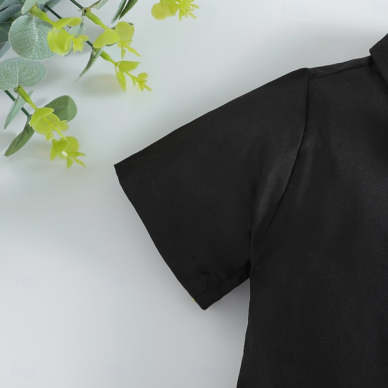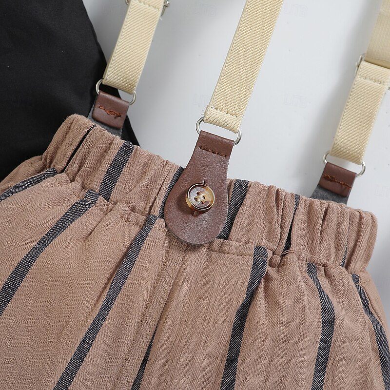 HOT ! 3 Pieces Ring Bearer Suit Boys Kids Toddler Shirt & Shorts School Formal Party Cool Basic Casual Stripe Striped V Neck Black Cotton