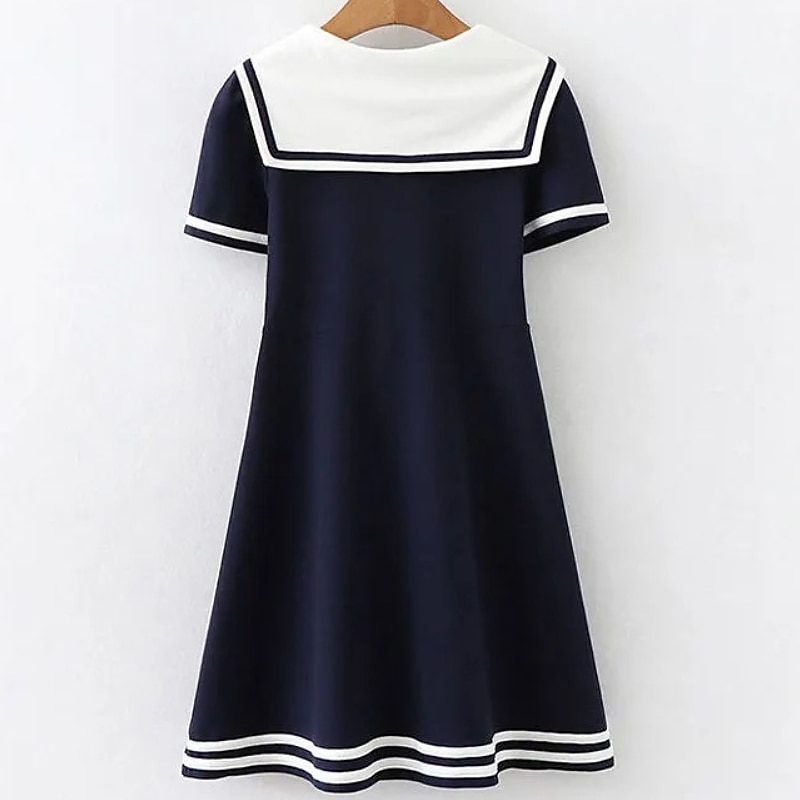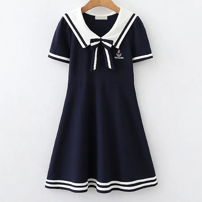 More information about Kids Girls' Dress Stripe Letter Short Sleeve School Outdoor Casual Embroidered Fashion Daily Basic Cotton Knee-length Casual Dress A Line Dress Summer Dress Summer Spring 3-13 Years White Navy Blue