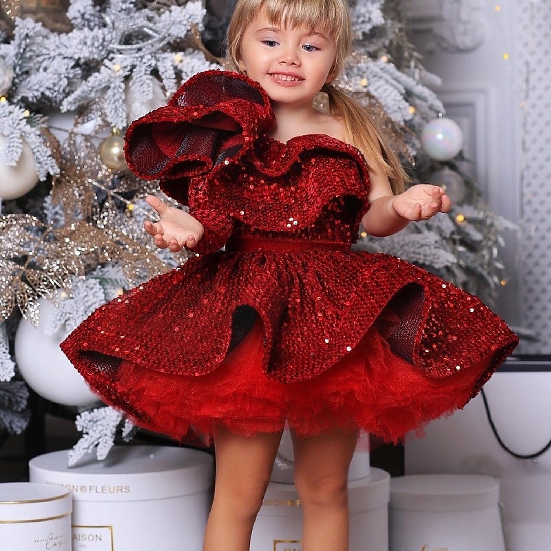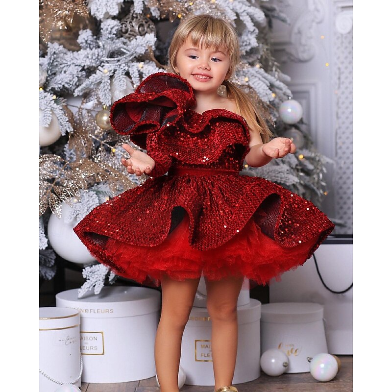 More information about Kids Girls' Party Dress Solid Color Long Sleeve Performance Mesh Princess Sweet Mesh Mid-Calf Sheath Dress Tulle Dress Summer Spring Fall kids Wine Blue Purple