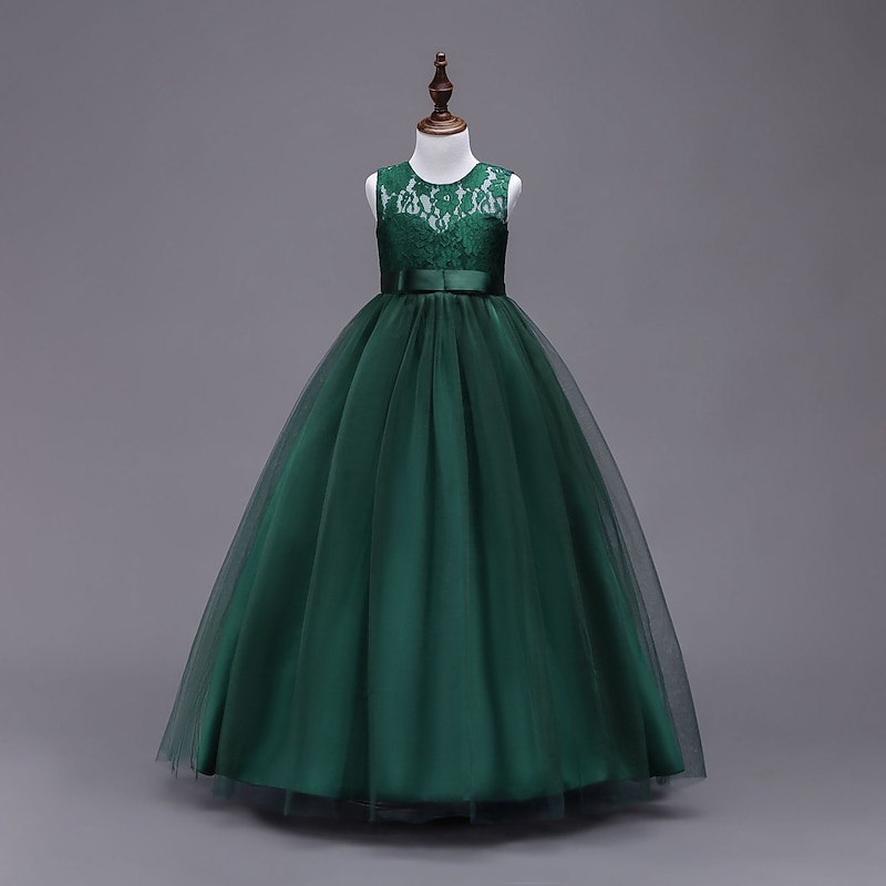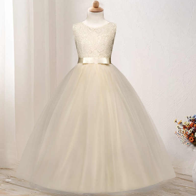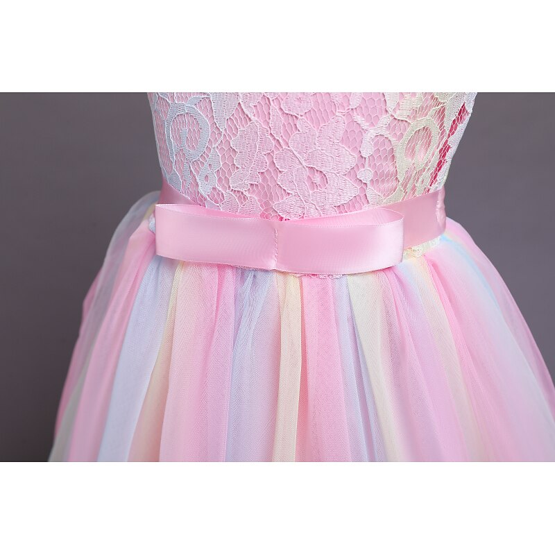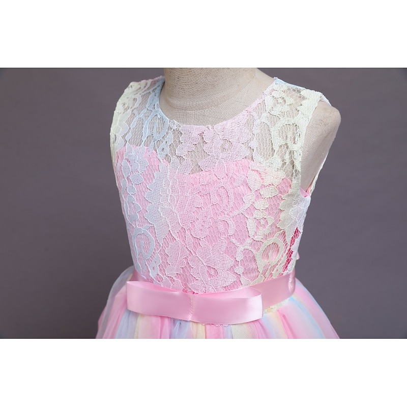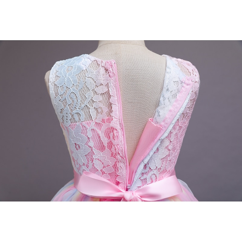 More information about Kids Girls' Flower Girl Dress Dress Sleeveless Wedding Party Lace Mesh Cute Polyester Maxi Flower Girl's Dress Colorful purple Color powder White