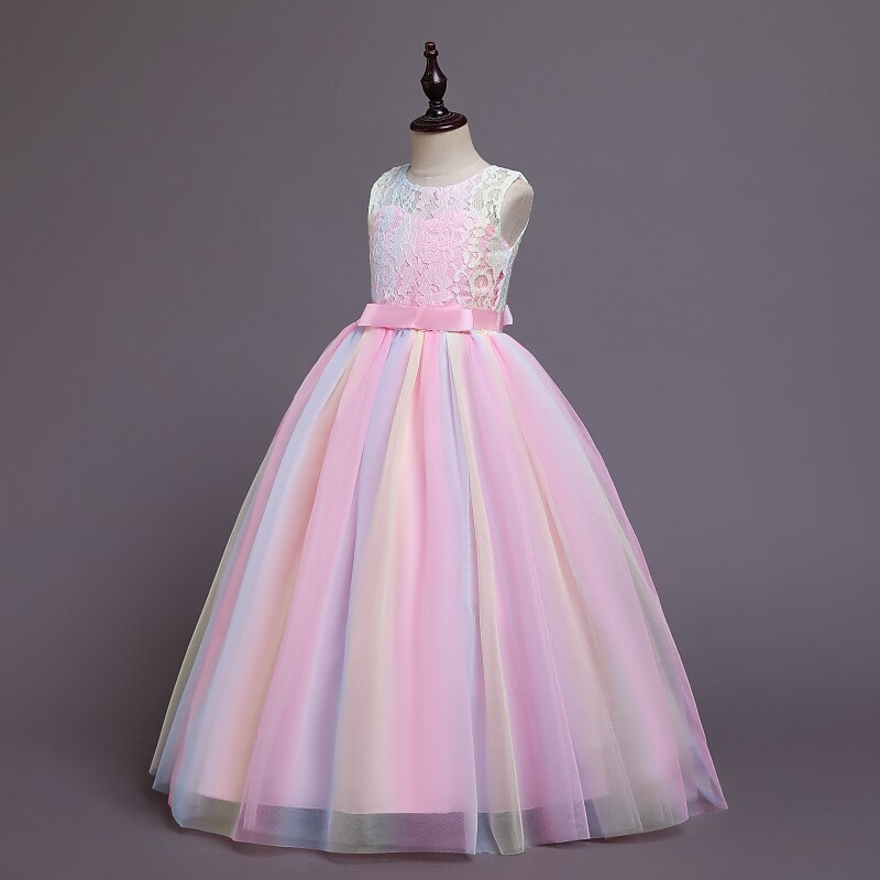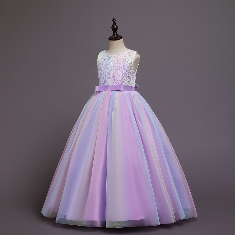 Kids Girls' Flower Girl Dress Dress Sleeveless Wedding Party Lace Mesh Cute Polyester Maxi Flower Girl's Dress Colorful purple Color powder White 8