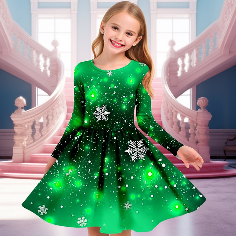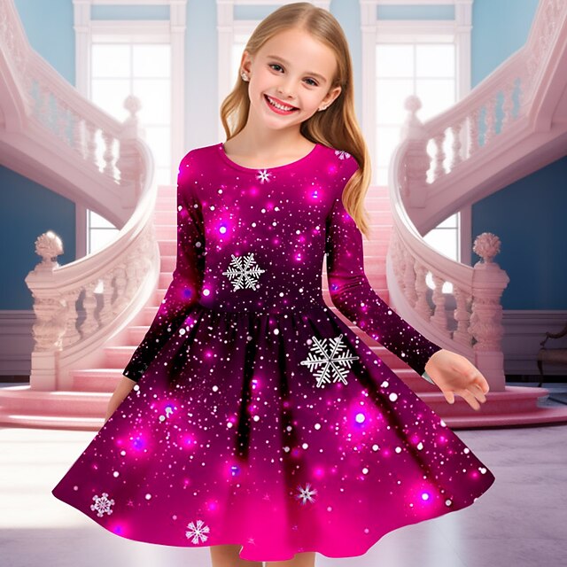 Why Choose Girls' 3D Snowflake Dress Snowflake Dress Long Sleeve 3D Print Fall Winter Vacation Sports & Outdoor Daily Cute Casual Beautiful Kids 4-12 Years Casual Dress A Line Dress Above Knee Regular Fit?