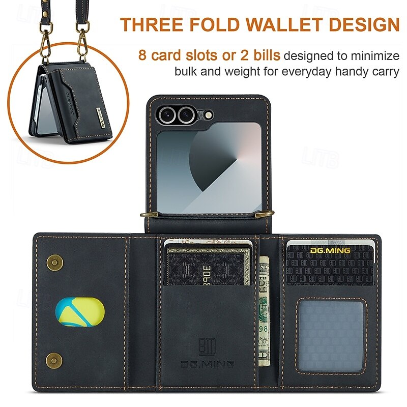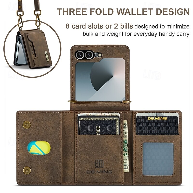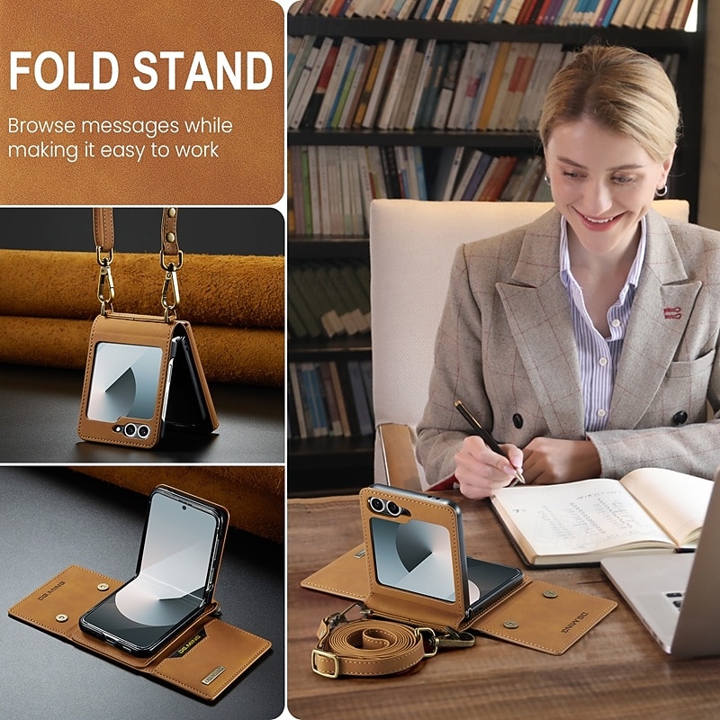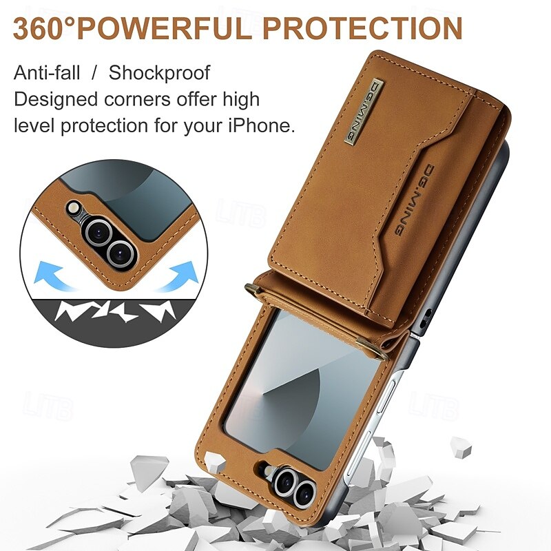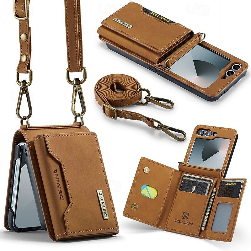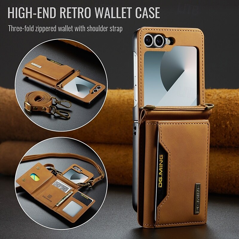 Why Choose Phone Case For Z Flip 7 Z Flip 6 Z Flip 5 Z Flip 4 Z Flip 3 Back Cover with Stand Holder with Lanyard Card Slot Retro TPU PU Leather?
