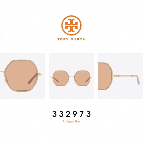 • [About the Tory Burch TY6092 332973] These Antique Pink Hexagonal Sunglasses feature a polished metal frame, designed for women seeking a modern, fashion-forward look. Ideal for narrow face shapes, the unique hexagonal design adds a sophisticated touch. Frame dimensions: Lens width 55 mm, bridge 19 mm, arm length 140 mm.