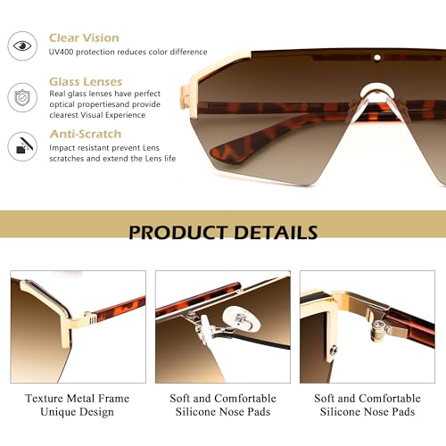 • [Unique Sunglasses Frame] - The trendy and rimless aviator frame adds avant garde design to the retro 1970s, one piece sunglasses can modify most people's face shape, is the best choice for taking pictures.