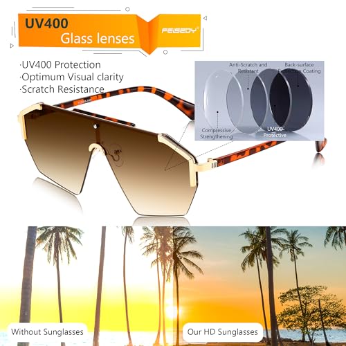 • [UV400 HD Lens Technology] - FEISEDY Lenses block 99% or 100% of UVB and UVA rays. Anti scratch, durable and easy to clean. At the same time, High-definition lens allows you to better observe the scenery in the sun, ensure clear vision and more natural vision sight. Let travel fearless and enjoy the sun.
