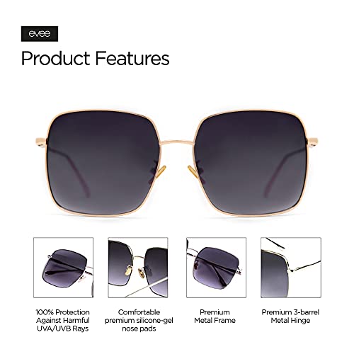HOT ! EVEE Square Oversized Sunglasses For Women with Flat Lenses and Metal Frame - (Kelly)