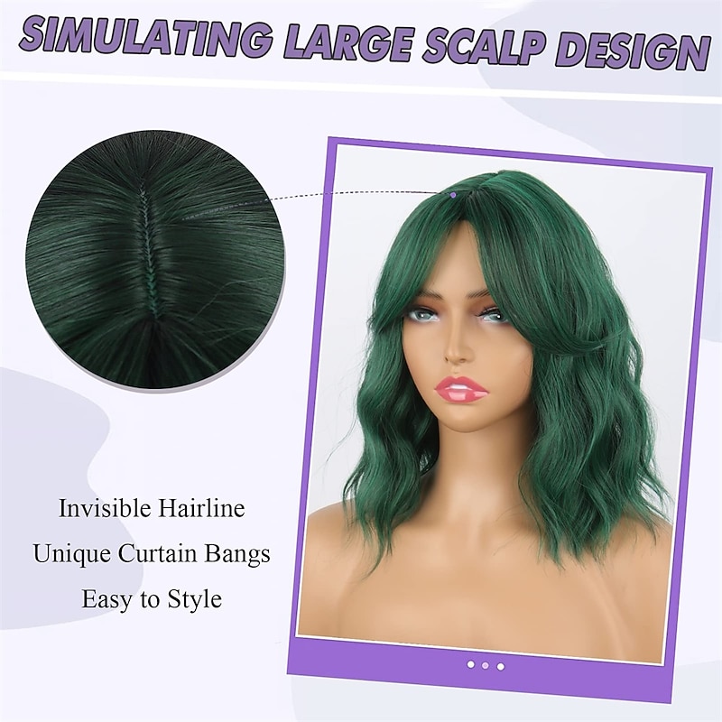 $19.99 - Dark Green Wavy Bob Wig with Curtain Bangs Synthetic Short Green Curly Bob Wigs with Bangs for Women Bob Curly Wavy Wig Natural Hair Shoulder Length Wigs for Women(Green) Christmas Party Wigs 2025. Shop for cheap Synthetic Trendy Wigs online? Buy at lightinthebox.com on sale today!