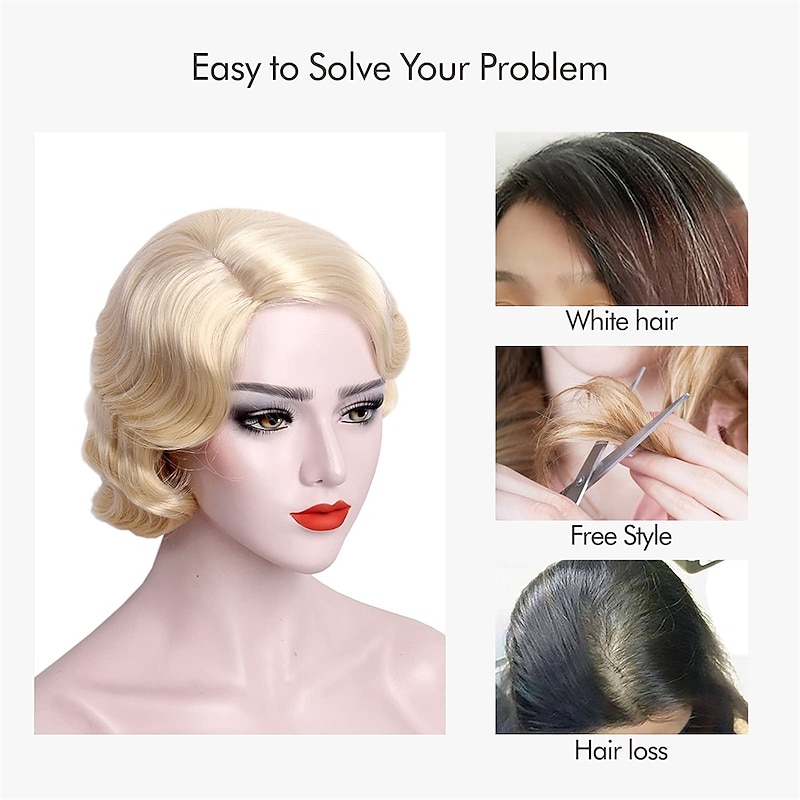 $17.49 - Blonde 1920s Wig for Women Short Finger Wave Party Wig Synthetic Full Vintage Wigs for Womens Lady Cosplay Costume Fancy Dress 20s Flapper Wig Halloween Wigs 2025. Shop for cheap Historical Wigs online? Buy at lightinthebox.com on sale today!