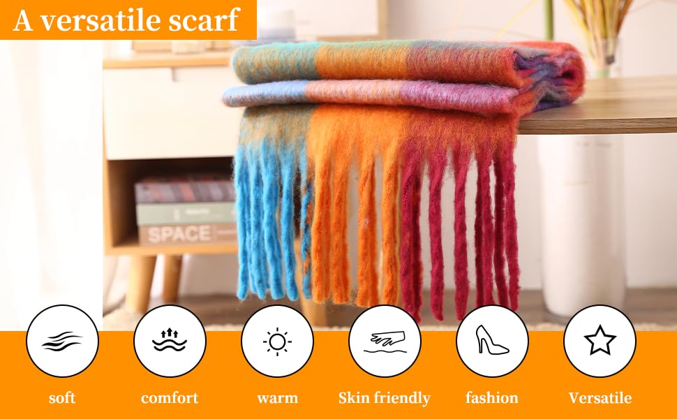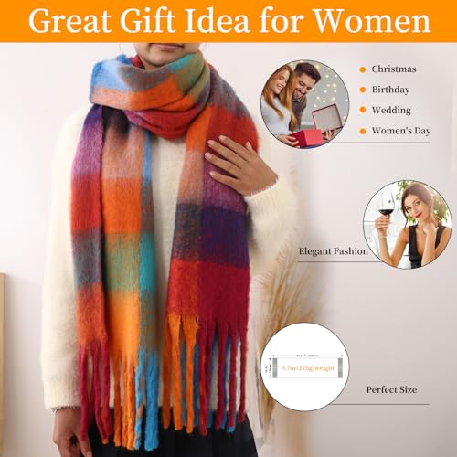 • Design:Multicolor The multicolors collide with plaid to create a simple and timeless fashionable style. This Winter scarf is decorated with tassels at the edge, adding vivid and fashionable in winter. It is the new trending fashion statement of the fall and winter season.