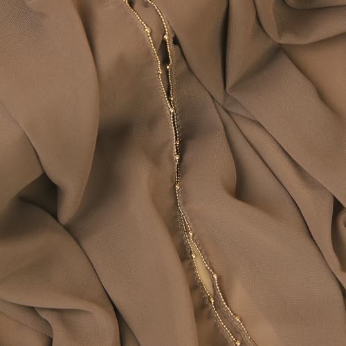 Fashion Chiffon Hijab For Women,Scarf With Gold Bead Chains Decorated Abaya Accessories Muslim Headscarf Shawl