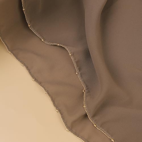 Fabric type: 100% PolyesterCare instructions: Hand Wash OnlyOrigin: Imported【Size】70.86 x27.5 inch fit for making all kinds of scarf tie wrap styles.【Material】The scarf is made excellent chiffon,premium quality durability ,ultra-soft, breathable, and drapes beautifully for a graceful look. It is safe on any skin.【Elegant Gold Bead Chain Craft】 One edge of the scarf is decorated with a chain of gold beads,These beads are made of copper and there is no need to worry about them getting rusty. It add a touch of luxury and sophistication.frames the face so nicely .【Widely Use】The chiffon scarves is perfect as a neck scarf, head wrap, or shawl, it complements both casual and formal attire for any occasion. Good accessories for daily outfits. Dust-proof and sun-proof, warm in winter fall, cool in hot summer It can protect you from sun and wind especially on beach or outdoor.【Excellent Gift Choice】 The combination of smooth chiffon and shimmering beads creates a refined, eye-catching detail without being overpowering. Perfect for parties and to dress up. Great gift for Mothers Day,Christmas,Thanksgiving,New Year,Birthday,Bride, Bridesmaid,Wedding etc. Perfect for everyday use. High quality materials and excellent craftsmanship ensure long-lasting durability.