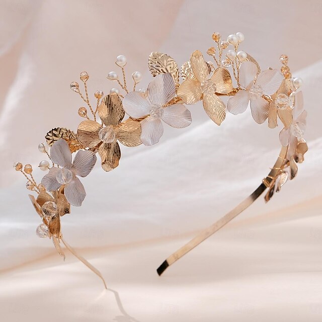 More information about Crown Tiaras Headbands Headpiece Imitation Pearl Alloy Wedding Beach Church Cocktail Elegant Luxury With Faux Pearl Flower Headpiece Headwear