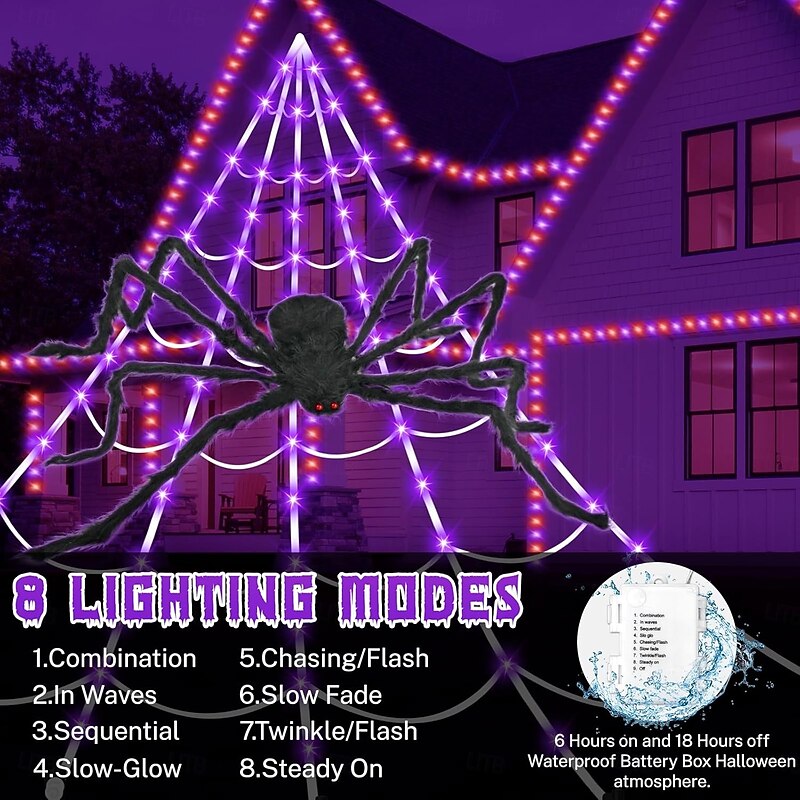 $23.99 - 1 Pc Halloween 5M * 4.8M triangular luminous web lamp purple orange AAA waterproof battery box remote control 250 LED beads indoor and outdoor courtyard decoration lights (excluding spiders) 2025. Shop for cheap Halloween Indoor online? Buy at lightinthebox.com on sale today!
