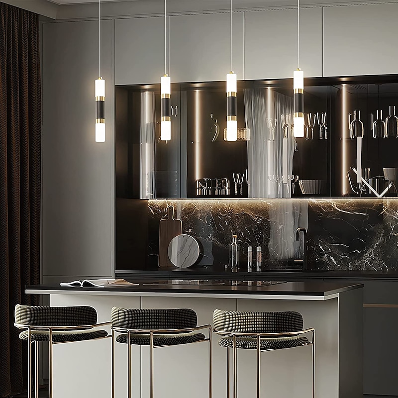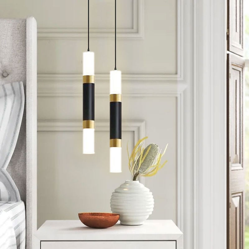 LED Pendant LIghts 2-Light Modern Kitchen Island Dimmable LED Modern Black Gold Mini Pendant Light, Bedroom Bedside Table Black Small Pendant Light 11