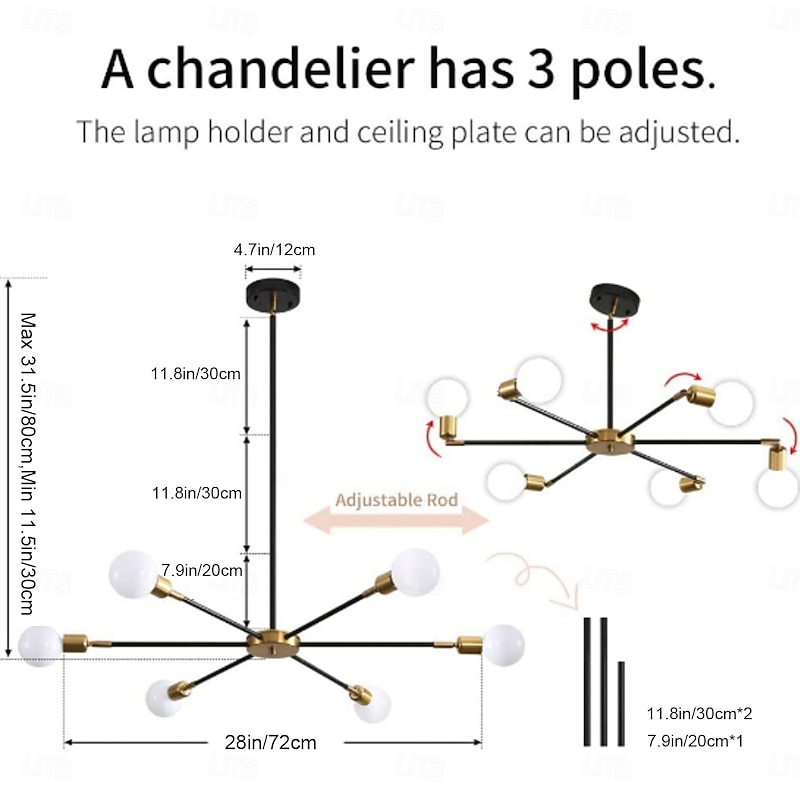 Industrial Pendant Light Restaurant Pendant Light Universal Joint Head Adjustable Rotating Bulb Socket Industrial Retro Ceiling Light Fixture Height Adjustable 85-265V 6