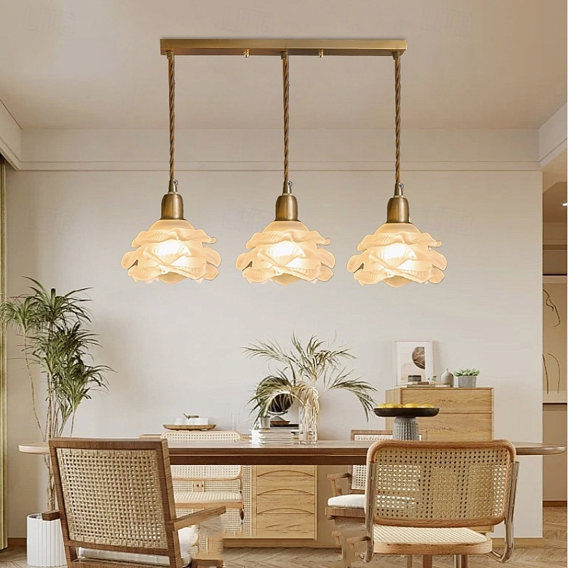 Retro Ceiling Lighting Flower Style Glass Hanging Lamp Lampshade White Glass Minimalist Flower Ceiling Hanging Lamp Fixture 12