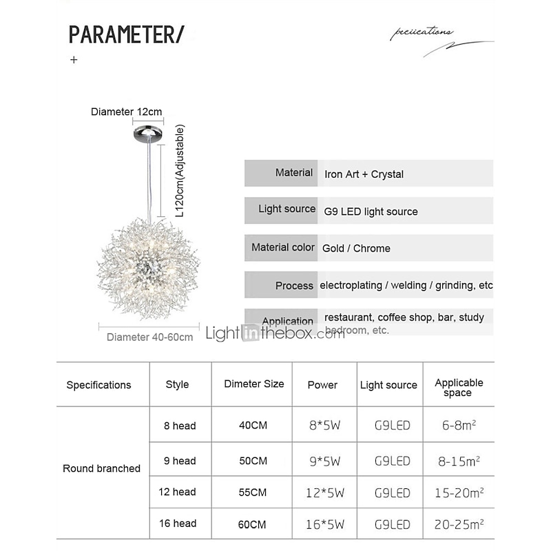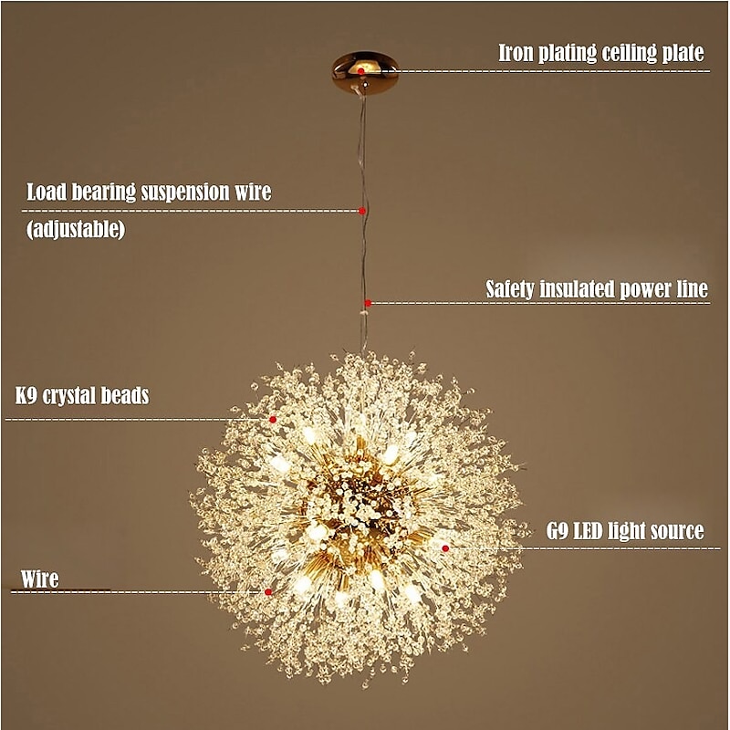 More information about 8/9/12 Heads LED Pendant Light Nordic Dandelion Chandelier Fireworks Crystal Lamp Artistic Living Room Dining Room Bedroom Lamp Romantic Clothing Store Bar Lamp 15-22inch