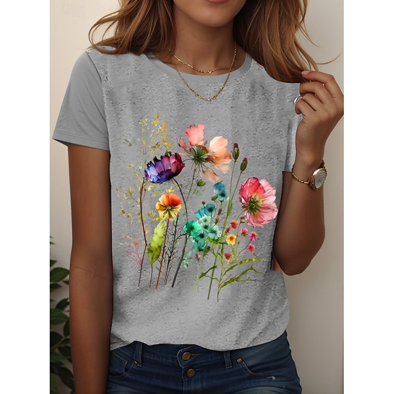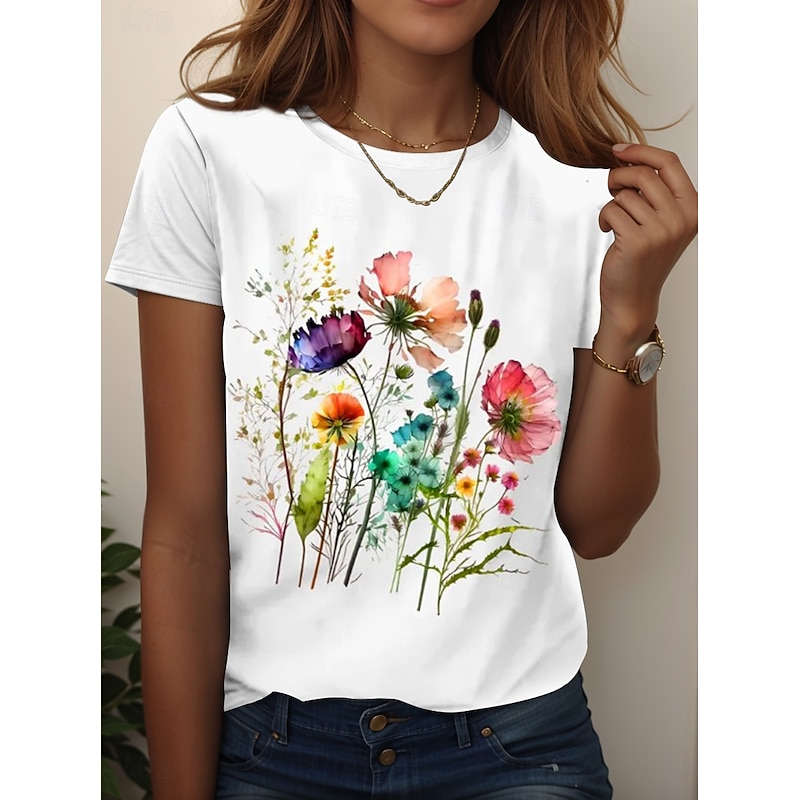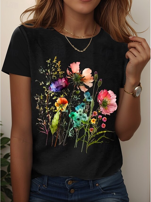 More information about Women's T Shirt Floral Graphic Plants Vintage Stylish Classic Short Sleeve Crew Neck Regular Tops Daily Going out Weekend Print Black White Pink Blue Sky Blue Summer Spring Fall