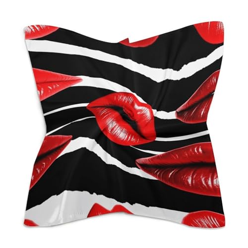 Red Lips Kiss Silk Like Head Scarf for Women Square Neck Scarf Satin Bandanas Fashion Headscarf