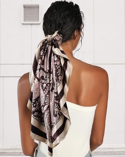 Why Choose Ladies Satin Neck Scarf -90x90cm Square Shawl, Vintage Printed Headdress, Ladies Scarf, Suitable for Different Seasons?