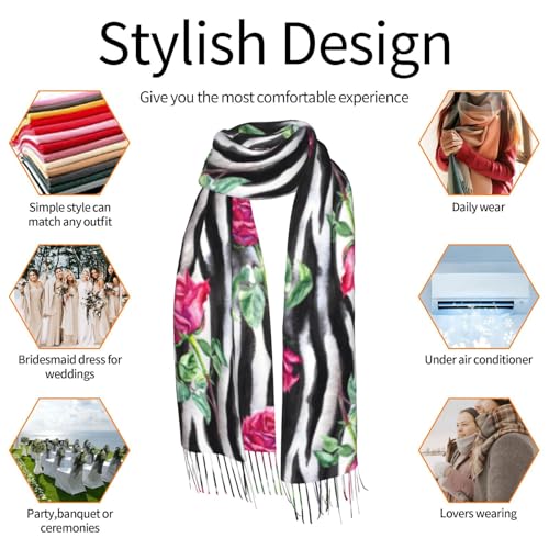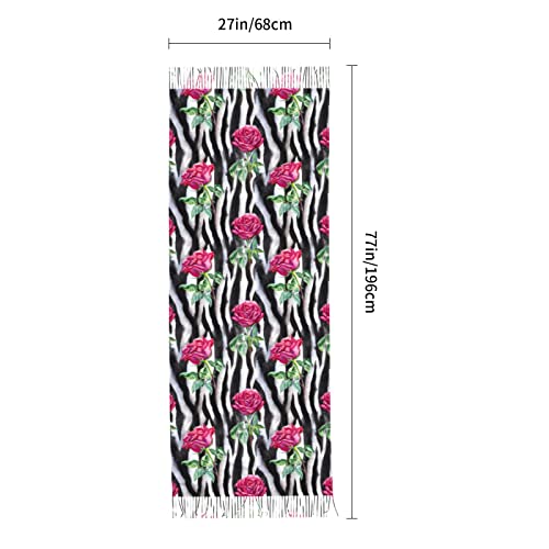 Tiger Striped Rose Scarf With Tassel For Women Large Warm Shawls Wraps Cashmere Scarves Blanket For Fall Winter 27 * 77 Inches 6