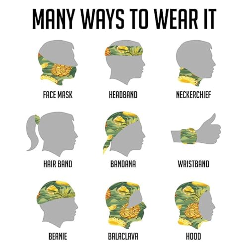 Fabric type: 100% PolyesterCare instructions: Hand Wash OnlyOrigin: ImportedComfortable material: Our Pineapple And Banana neck gaiter made of premium polyester microfiber; super soft,comfortable,breathable and warm,perfect for keeping your face, neck, ear and nose from cold, wind.All-weather protection: The outdoor neck gaiter breathable fabric keeps you cool in summer; thermal insulation retains warmth in winter; shields neck and face from sun, wind, snow.Secure fit: Skiing face cover with high-elastic stretch fibers prevent slipping during intense activities; stays in place whether running, cycling, or skiing.It is ideal for wear this skiing mask under a helmet.12-in-1 multifunctional headwear: Transform into a face mask, neck gaiter, headband, pirate hat, helmet liner, wristband, and more; perfect for sports, travel, or daily use.Unisex & multi-sport windproof scarf: Cold weather face mask is great for winter outdoor sports,such as skiing, snowboarding, hiking, fishing, running, hunting, cycling, climbing or many other outdoor activities. Perfect for everyday use. High quality materials and excellent craftsmanship ensure long-lasting durability.
