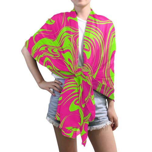Why Choose OTVEE Silk Like Scarf Neon Green and Pink Pattern Scarf Soft Lightweight Chiffon Scarf Shawl Wrap for Women?