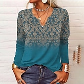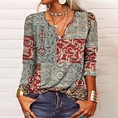 More information about Women's Shirt Blouse Flower Modern Casual Long Sleeve V Neck Regular Tops Daily Going out Print White Red Blue Orange Summer