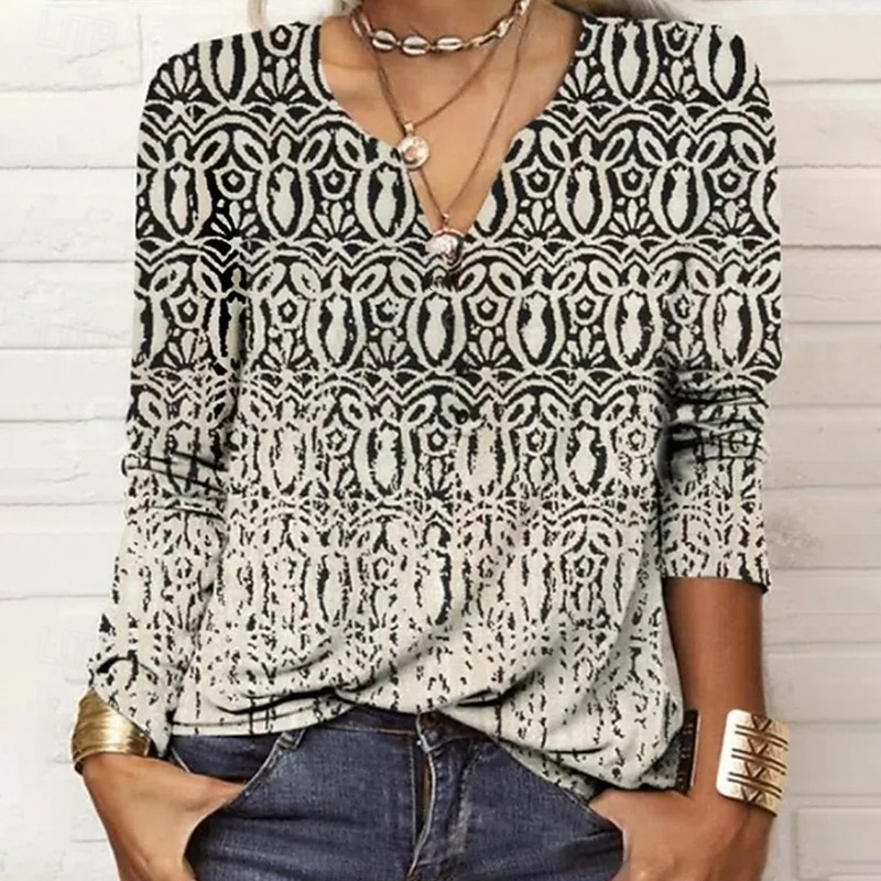Highlights - Stay stylish and comfortable all summer long with this women's polyester top - Features a trendy V neckline and long sleeves for a versatile look - Perfect for daily wear with a casual design and eye-catching print - A must-have addition to your wardrobe for the season - Embrace the warm weather in style with this chic and trendy top