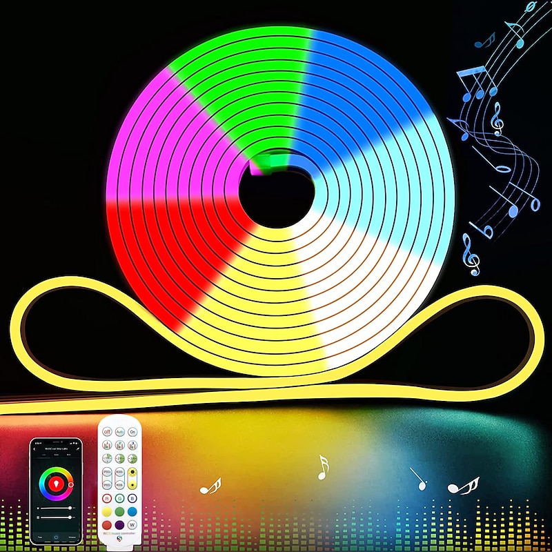$52.99 - RGB Waterproof Smart Neon Rope Light Kit, Silicone LED Strip Lights 3M, 5M, or 2x5M Bluetooth App Control, Dimmable, Music Sync, Multi-Color, DIY Cuttable 2025. Shop for cheap Smart Strip Lights online? Buy at lightinthebox.com on sale today!