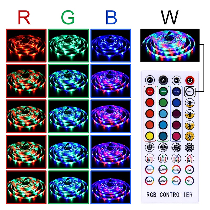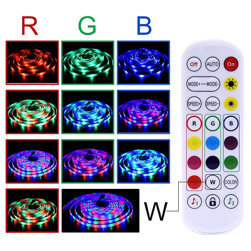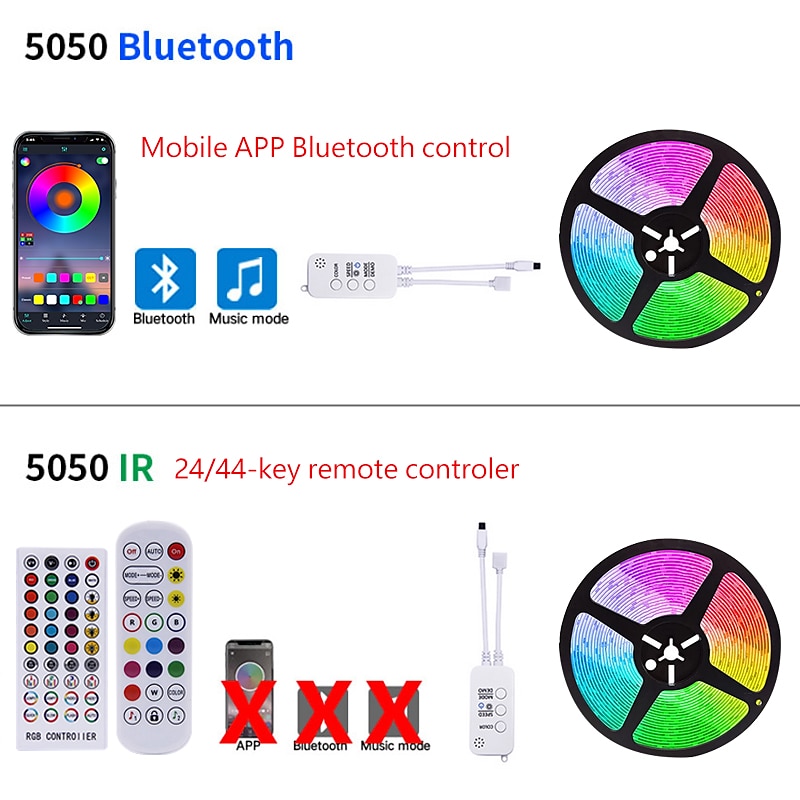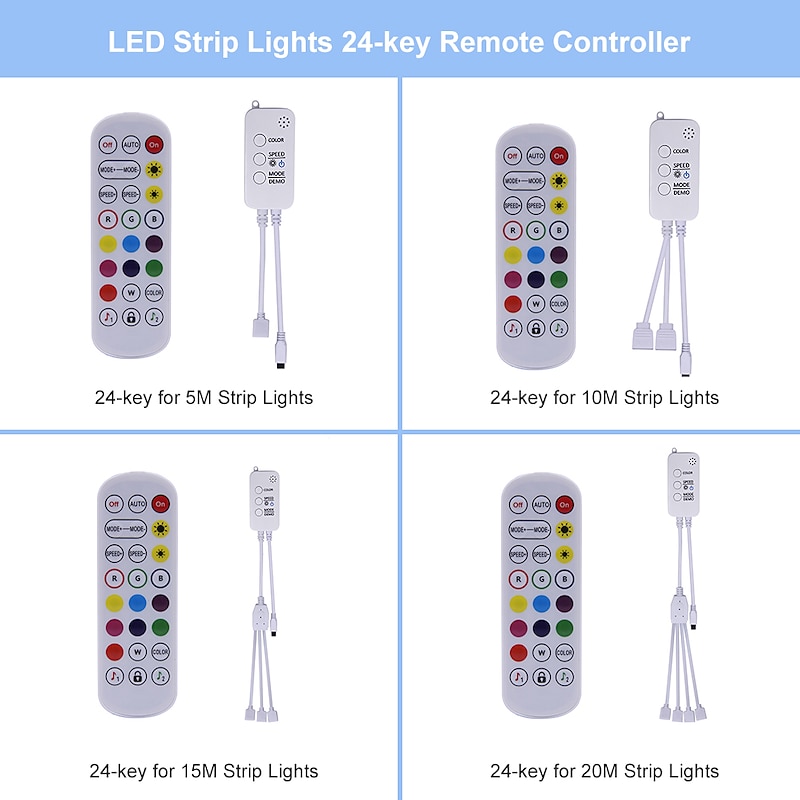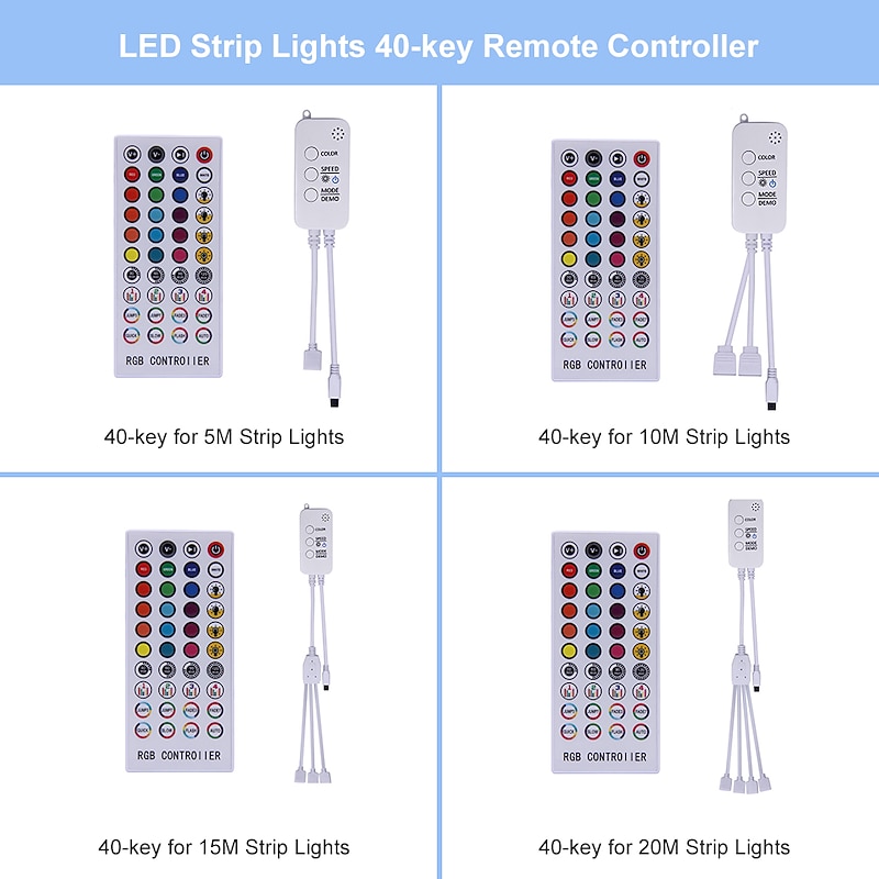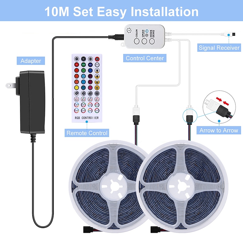Highlights - Multiple color options available for SMD5050 LED strip lights, including Red, Green, Blue, White, Orange, Pink, Purple, Yellow, and more. - Remote control should be pointed directly at the receiver and not more than 3 meters away. - LED strip lights can typically only run up to 5 meters when wired in series, but can be extended by wiring strips to the transformer in parallel. - It is recommended to wire multiple strips back to one transformer, rather than joining them together in series. - Various power adapter options are available, so please choose carefully before placing your order.