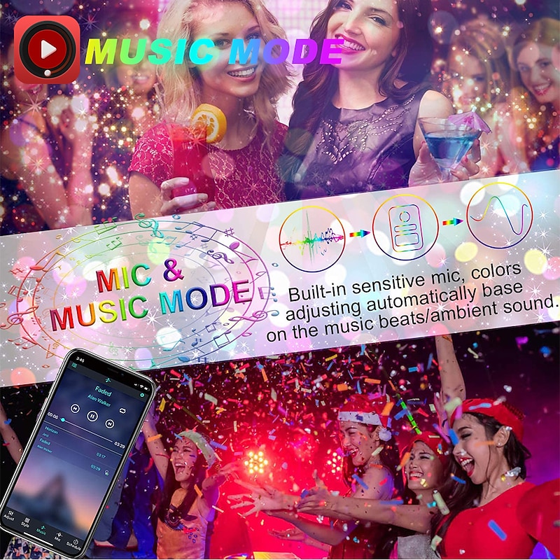 LED Smart Strip Lights 20m RGB Music Sync 12V Waterproof LED Strip 2835 SMD Color Changing LED Light with Bluetooth Controller Adapter for Bedroom Home TV Back Light DIY Decor 13