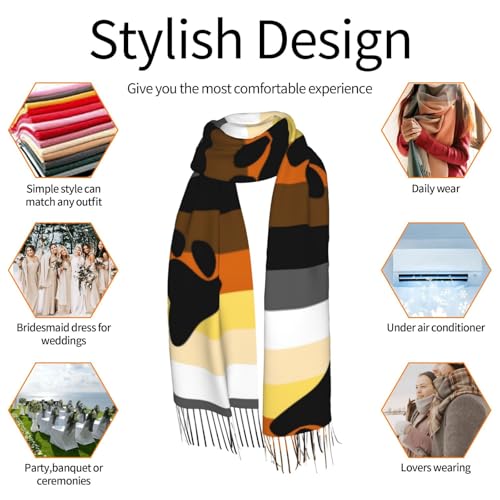 Women'S Bear-Pride Flag Scarf Wrap Tassel Fringes Poncho Printing Shawl 77 X 27 Inch