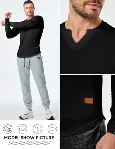 JMIERR Mens Long Sleeve Muscle T Shirts Casual V-Neck Longline Ribbed Tee Shirts