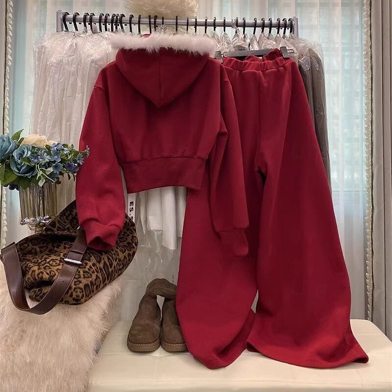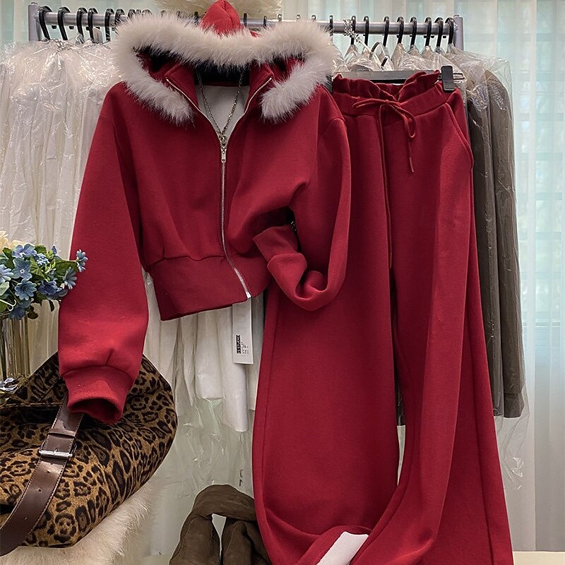 $54.99 - Women's Full Zip Sweatsuits Fur Hooded Jacket with Pocket Solid Colored Clothing Suit Fall & Winter Black Red Gym Outdoor Running Windproof Warm Long Sleeve Sport Activewear Micro-elastic Regular Fit 2025. Shop for cheap Tracksuits online? Buy at lightinthebox.com on sale today!