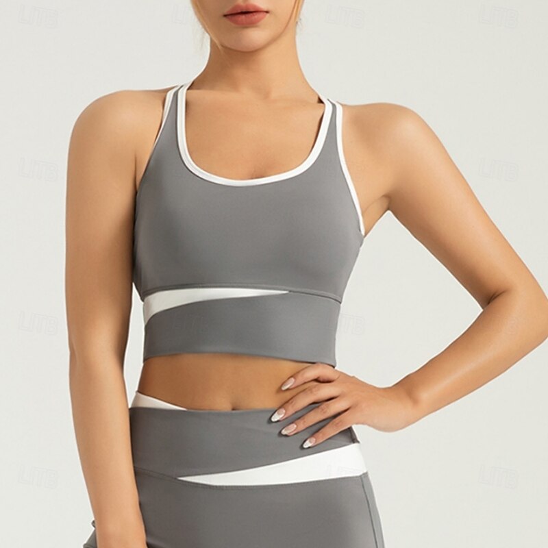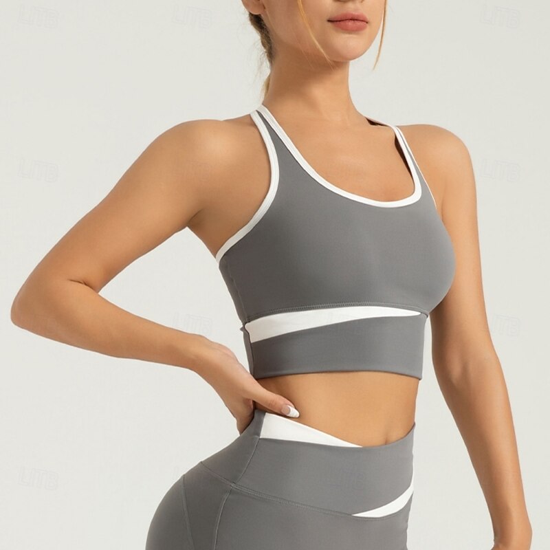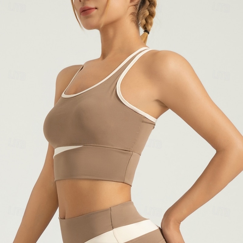 More information about Women's Light Support Sports Bra Running Bra Open Back Cross Back Bra Top Padded Fitness Leisure Sports Running Breathable Lightweight Soft Black Khaki Gray Solid Colored