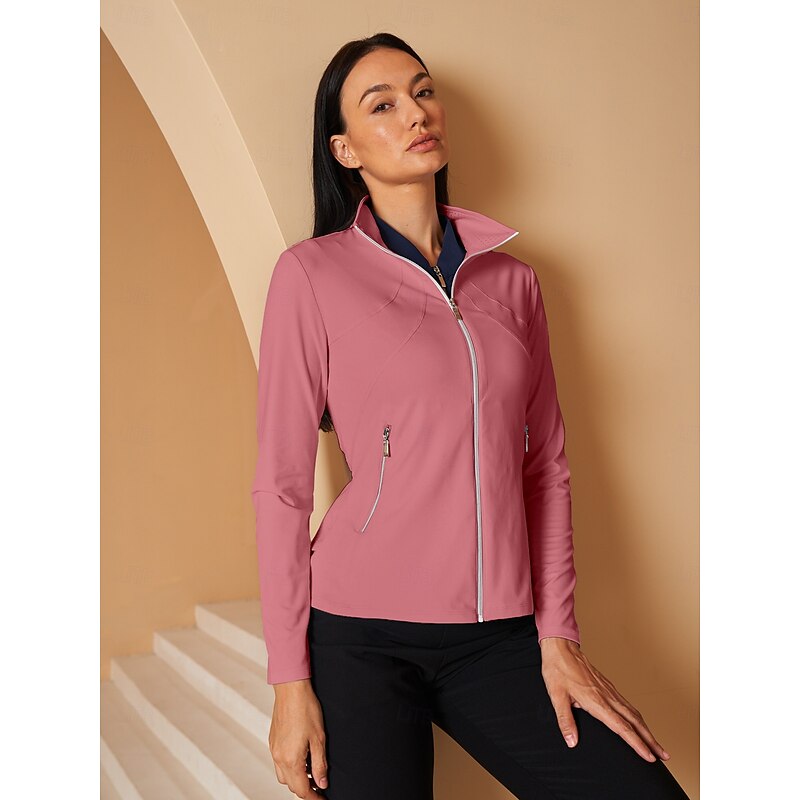 Women's Golf Jacket Yan pink Gray Pink Black Long Sleeve Top Ladies Golf Attire Clothes Outfits Wear Apparel 18