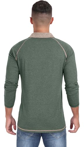 • Men's raglan polo shirts features with polo collar, 3 button closure, subtle contrast stitching throughout, faux wood buttons, the contrasts will wake up denim and khakis.