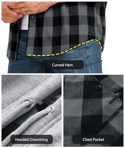 • Modern and Stylish Design:Featuring a contemporary style, this button-down shirt comes with a drawstring hood and a classic button-front closure. The plaid pattern and functional chest pocket add both practicality and a touch of fashion, making it a versatile piece for any casual outfit.