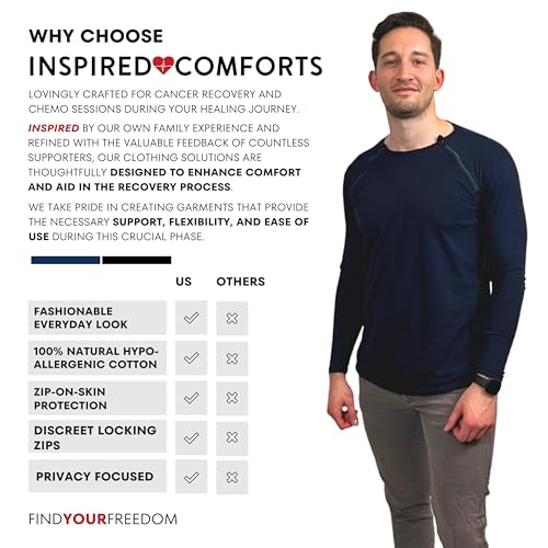 Inspired Comforts Men’s/Unisex Chemo Port Access Shirt with Dual Chest Zips | Full Sleeve | 100% Cotton 1