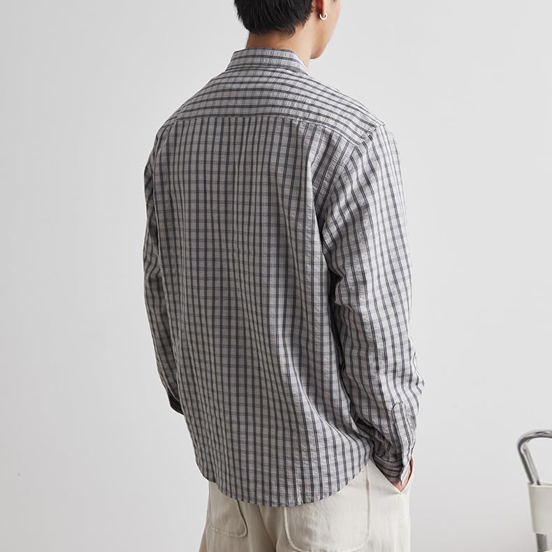 Men's American Vintage Plaid Shirts Spring Fall Long Sleeve Casual Coat with Pockets 5