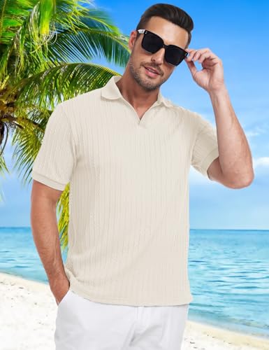 • Fashion Textured Polo Shirts! The knit polo is lightyears away from the traditional golf shirt, it can dress up casual items, or dress down dressier clothing. Makes these ribbed knit shirts perfect for daily wear, casual, work, business, office, golf, going out, date, party, beach, travel, and sports, athletic, fishing, hiking, camping...