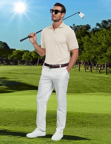 • Stylish Mens Knit Polo Shirts! Regular-fit polo shirt in a soft, cable-knit polyester spandex blend with a comfortable, classic silhouette. Stretchy, breathable, lightweight, UPF 50+ sun protection, knitted polo shirts are suitable for you in every season, from spring to summer to autumn.