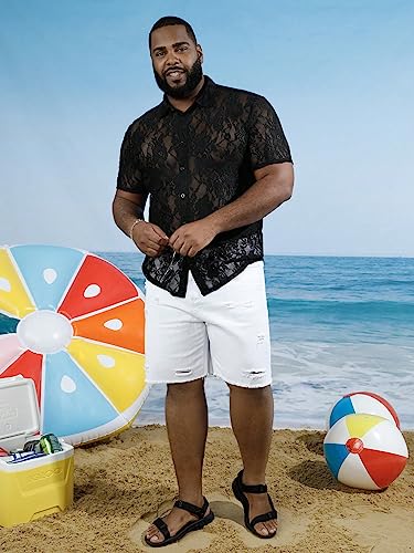 Why Choose WDIRARA Men's Floral Lace Shirt Contrast Mesh Button Down Shirt Short Sleeve Blouse?
