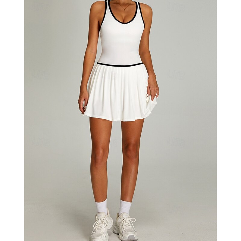 $49.99 - Women's Patchwork Tennis Dress Sleeveless Pleated Contrast Binding Quick Dry Breathable Tennis Pickleball U Neck Dress Black White Dark Navy Tennis Clothing 2025. Shop for cheap Women's Tennis Dress online? Buy at lightinthebox.com on sale today!