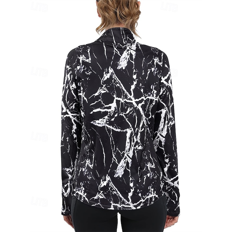 Why Choose Women's Abstract Art Golf Polo Shirt Tennis Shirt Long Sleeve Print Quarter Zip Pullover UV Protection Elastic Breathable Tennis Golf Pickleball Zip Collar Shirt Polo Black Blue Tennis Clothing?
