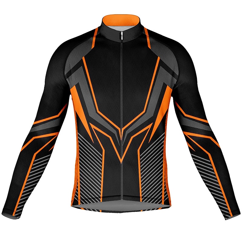 HOT ! Men's Cycling Jersey Graphic Geometic Long Sleeve Bike Top with 3 Rear Pockets Mountain Bike MTB Road Bike Cycling Quick Dry Reflective Strips Back Pocket Moisture Wicking Sports Yellow Red Orange