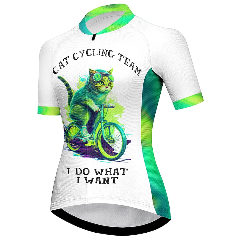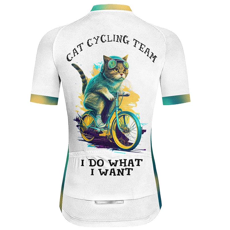 Crafted in breathable moisture-wicking polyester this 21Grams cycling jersey offers a comfortable stretchy fit for a summer ride Its short sleeves and rear pockets balance functionality and style Adorned with a playful cat pattern it features reflective strips for safety
